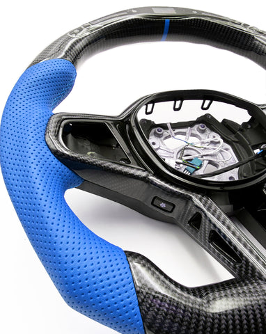 G8X Steering wheel in Gloss Carbon Fiber and Leather Molded sides .